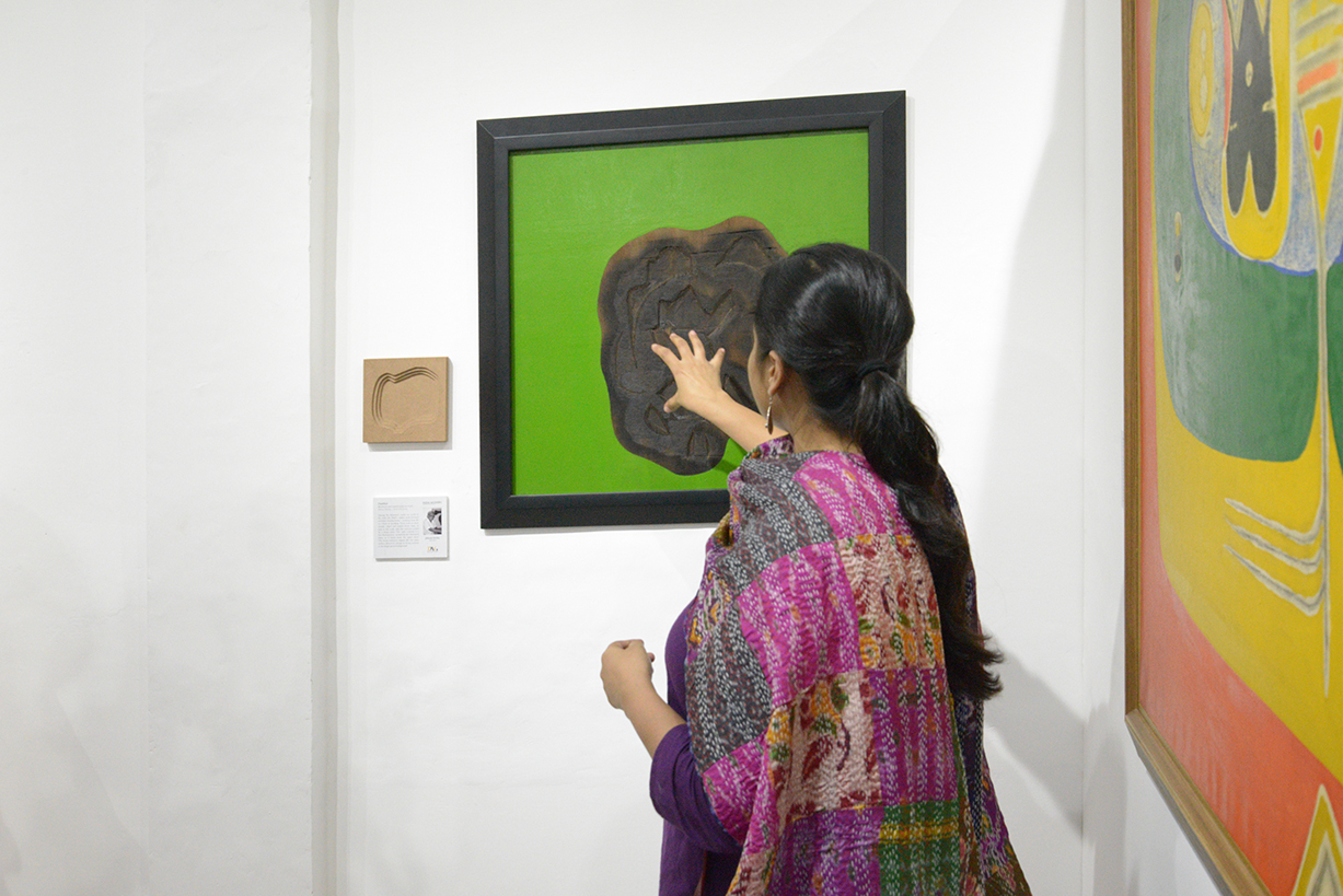 The aim is to open the interpretation of DAG Modern’s art collection to a wider audience including the visually impaired, blindness and mental disabilities. This project opens up new understandings for everyone visiting this exhibition, with the help of specially designed Braille tactile artworks, Open Braille books and curated art wall.Works of artists like SohanQadri, Eric Bowen, Jeram Patel, Jamini Roy along with other artists have been recreated in a tactile format to touch and feel for this exhibition at PLKA.